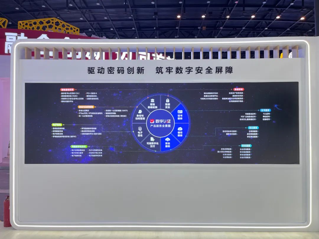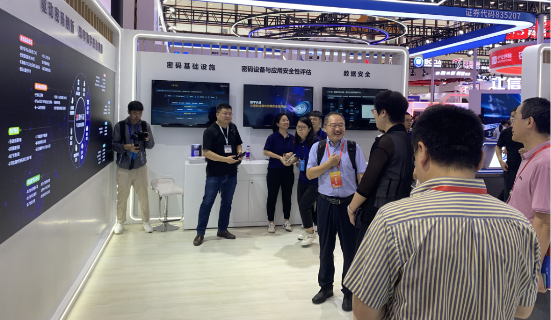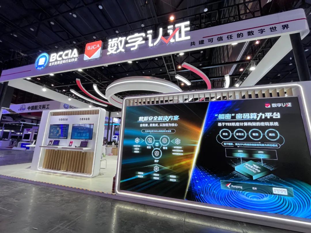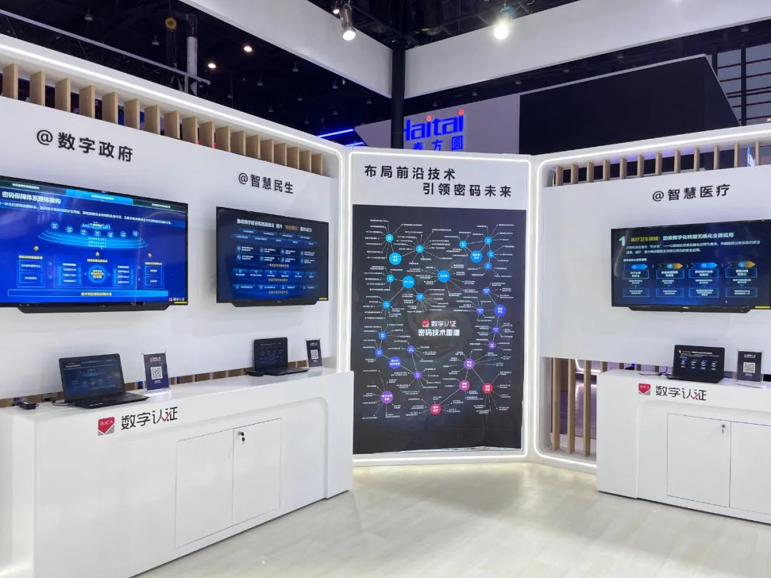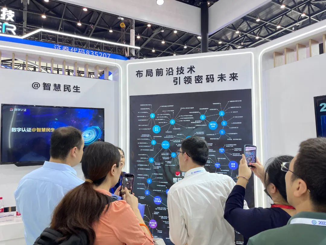 北京数字认证股份有限公司(简称:数字认证)重磅亮相,在上百平米的展区内,数字认证全方位呈现了近五年来的密码创新实践和成果,不但有迄今最全面的密码产品和解决方案,最前沿的技术创新成果,还多维度集中展示了数字认证20多年来在政务、医疗、教育、金融、企业等数十个行业沉淀的丰富应用实践。